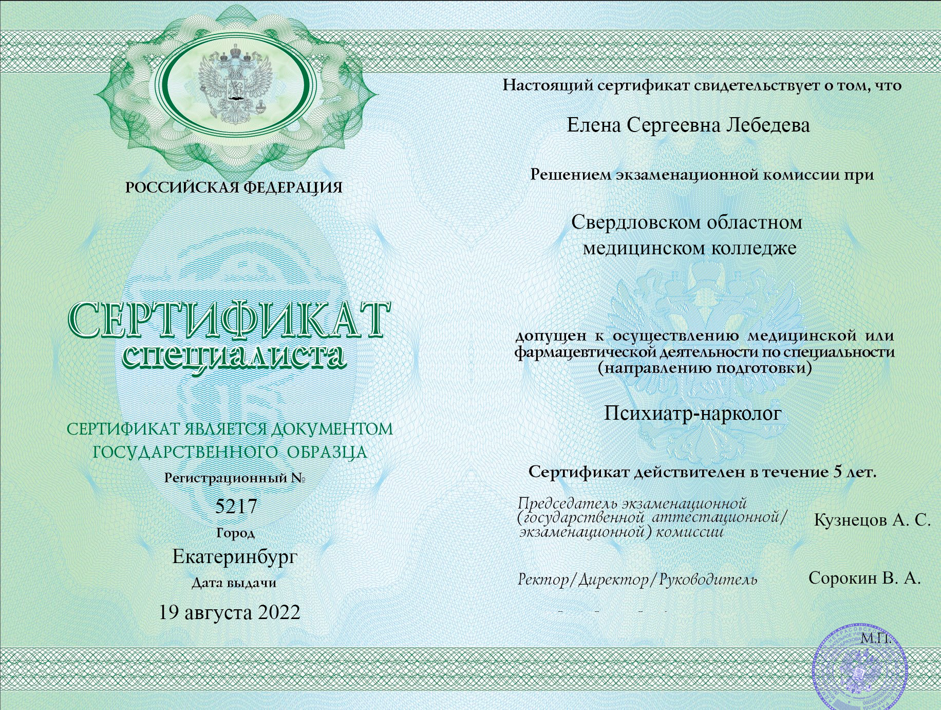 Елена Сергеевна Лебедева врач нарколог клиники доктора Стукаловой в Волгореченске